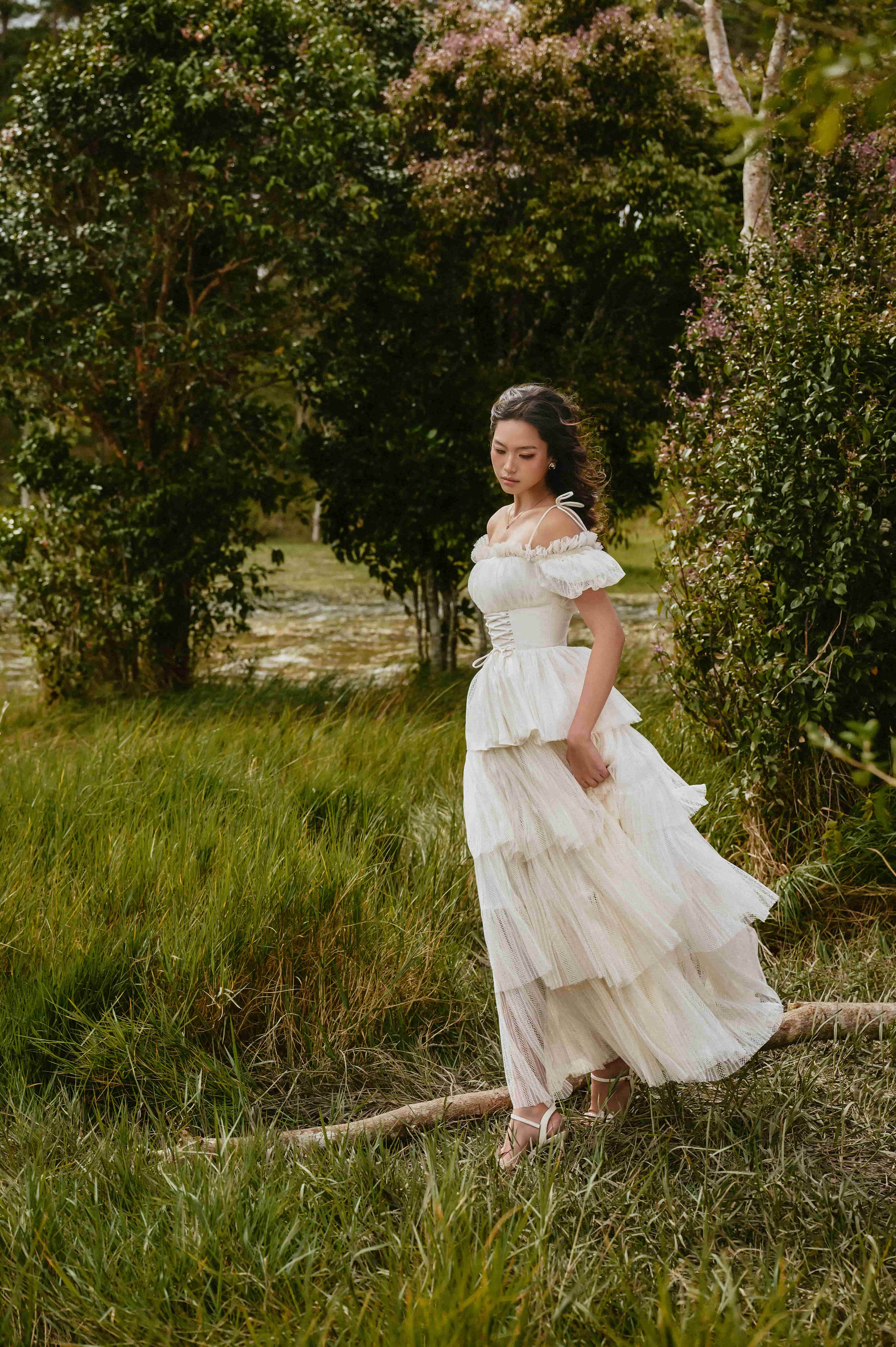 Soft, feminine, and delicately layered, the Cruel Summer Corset Dress embodies effortless charm. The ruched bodice with puff sleeves and tiered skirt evokes a nostalgic, romantic spirit - reminiscent of sunlit afternoons and gentle summer breezes.
