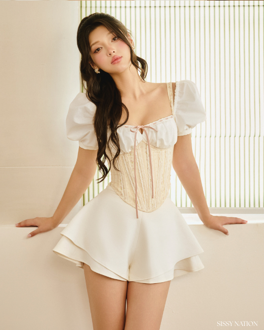 A structured corset that softly defines the waist with timeless elegance. Our Lollipop Corset top features delicate lace detailing, a flattering sweetheart neckline, and an adjustable lace-up back for a refined, feminine fit.