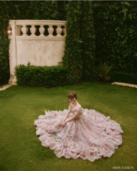 Step into a dream with the Peony D Gown, a voluminous statement piece made for garden soirees and storybook moments. Featuring cascading ruffles, soft pastel florals, and a romantic sweetheart bodice, this gown is a poetic blend of structure and softness.