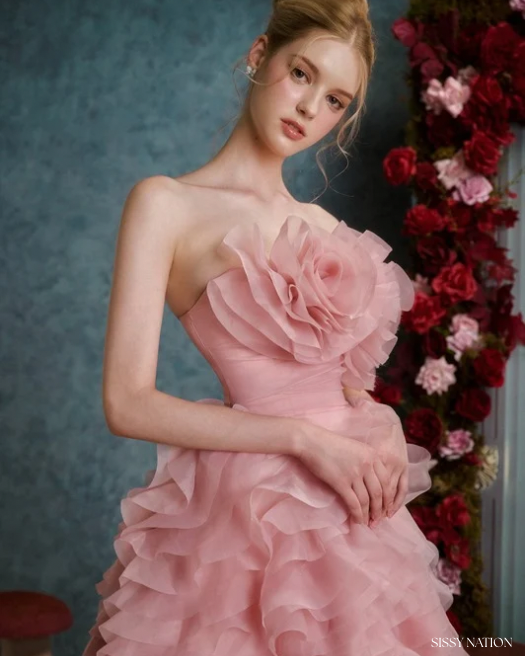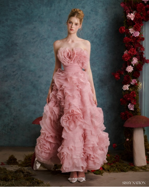 Lavishly adorned with handcrafted 3D flowers and delicate ruffles, this dress embodies both romance and allure. Designed to leave a lasting impression, it’s the perfect ensemble for a romantic date night.