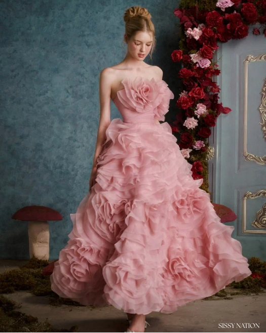 The Rosie Layers Gown’ - a delicate organza midi dress crafted to enchant and elevate any gathering into a graceful affair. This exquisite piece features a softly structured corseted bodice with gentle cups to flatter your shape.